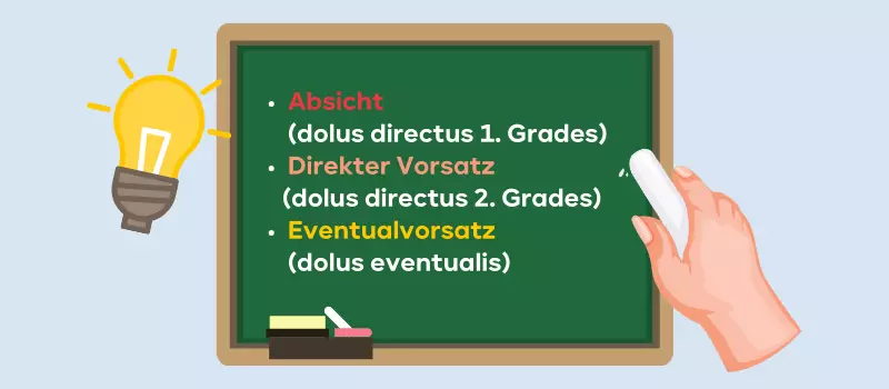 Vorsatz ist das Wissen und Wollen (Wissens- und Willenselement) bzgl. der Tatbestandsverwirklichung zu dem Zeitpunkt der Tatbegehung (Simultanitätsprinzip / Koinzidenzprinzip i.S.d. § 8 StGB i.V.m. § 16 I StGB). Dies ist eine der wichtigsten Definitionen im Strafrecht überhaupt. Sie gehört zum Grundlagenwissen überhaupt (im Zivilrecht wäre das vergleichbar mit dem Grundlagenwissen zum Beispiel über das Stellvertretungsrecht). Fehler in diesem Bereich werden von den Prüfern (einige unserer Dozenten sind sogar Prüfer am Justizprüfungsamt gewesen) hart abgestraft. Ein Durchfallen in Jura ist dann (leider) oft nicht mehr weit. Du kannst das vermeiden, indem Du Dich in Deiner Jura Examensvorbereitung richtig auf die Grundlagen konzentrierst. Dann wird auch Dein Letztversuch in Jura bzw. 2. Versuch im Jura Examen zum Erfolg.